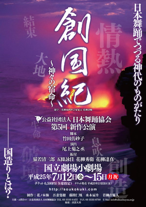 平成25年7月12日(金)〜15(月・祝) 国立劇場小劇場の第5回新作公演「創国紀〜神々の宿命〜」の女組の回に、市川ぼたんが出演させていただきます。チケットは全席指定で6,500円です。